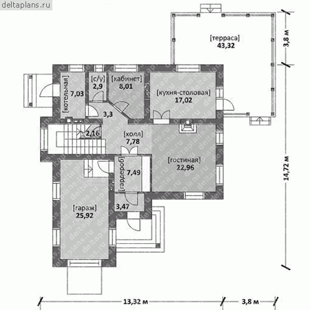 Проект одноэтажного дома "Оригами-9" из бруса
