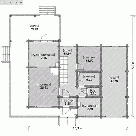 Проект одноэтажного коттеджа "Оттава" из газобетона