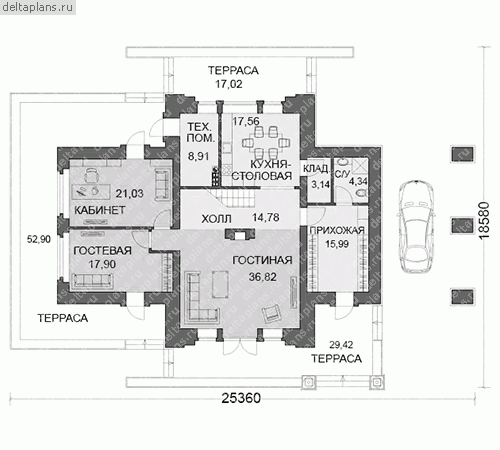 Проект одноэтажного коттеджа "Душистая Сирень" из газобетона