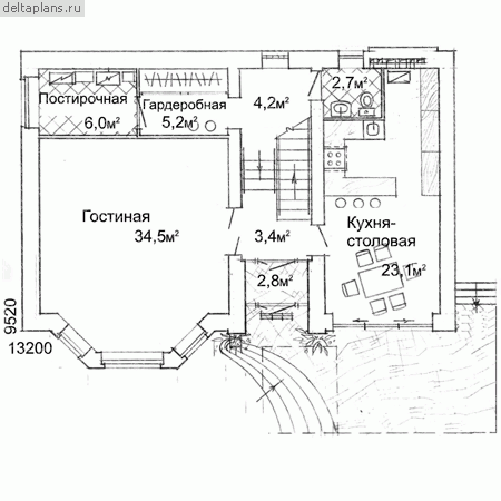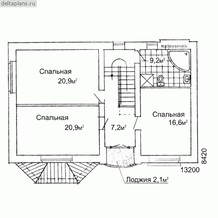 3 спальн. · 1 санузл. · 2 этаж