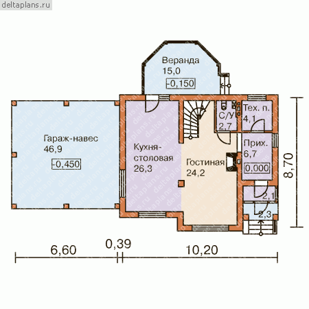 Проект одноэтажного дома "Золотой ключик-3" из бруса
