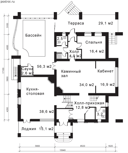 Проект двухэтажного коттеджа "Осенний поцелуй" из газобетона