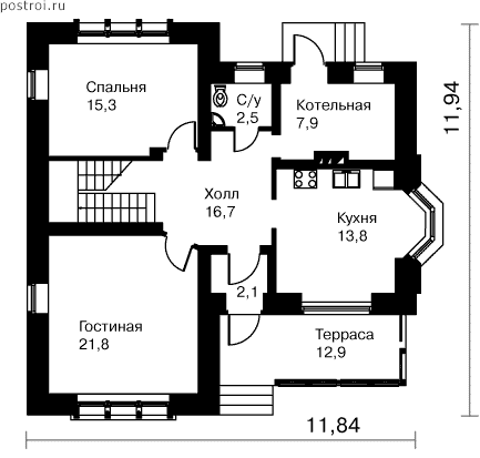 Проект двухэтажного коттеджа "Королек" из газобетона