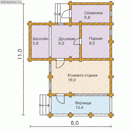 Проект одноэтажного дома "Малыш" из бруса