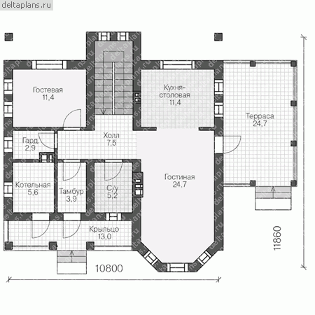 Проект одноэтажного дома "Сапожок-2" из бруса