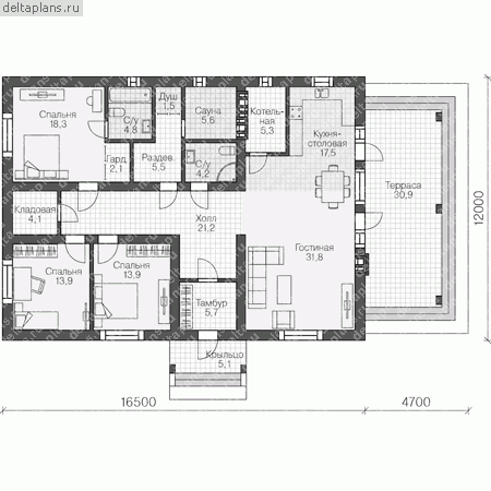 Проект дома из газоблоков 16х9 ГББ-162: цена 6855000 руб.