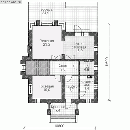 Проект одноэтажного коттеджа "Страдивари" из бруса