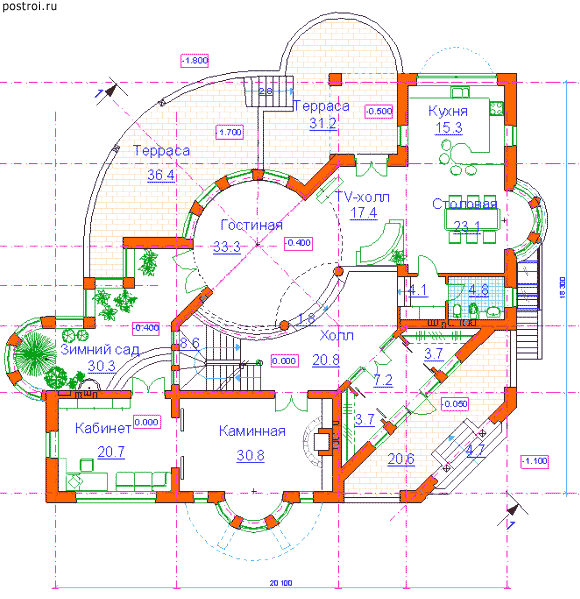 Проект одноэтажного коттеджа "Черкизово" из газобетона