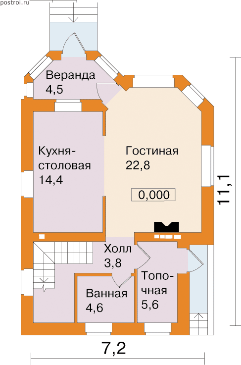Проект одноэтажного дома "Чех-М2" (с топочной) из бруса