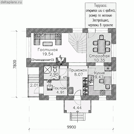 Проект дома 3 спальни 2 санузла №366