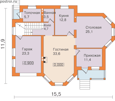 Проект дома из керамоблоков 19х12 ТКБ-310: цена 11492000 руб.