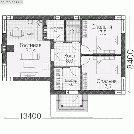 Проект DOMFIX 1 - одноэтажный каменный дом