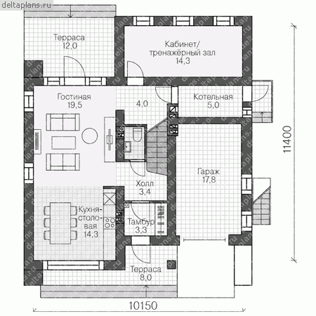 Проект двухэтажного дома "Уголок 9х10" из бруса