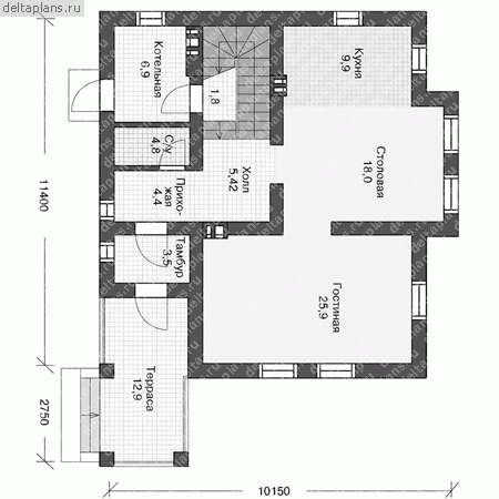 Проект одноэтажного дома с террасой Flat-02-158 м² — Домострой