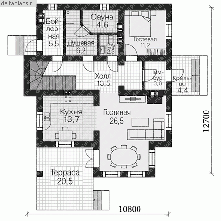 Проект одноэтажного дома "Лебяжий" из бруса