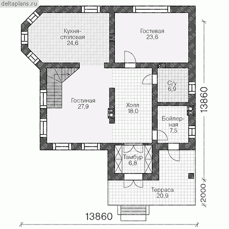 Проект одноэтажного коттеджа " Парус" из газобетона