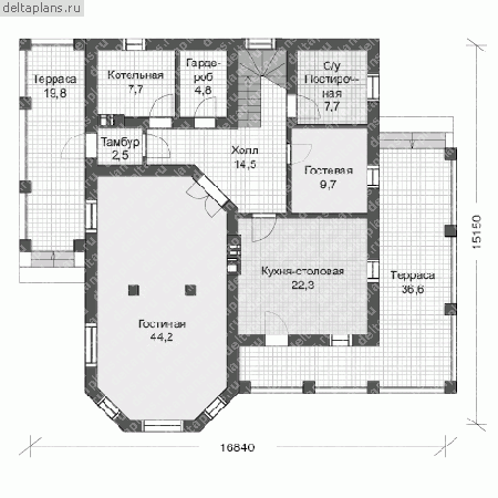 Проект одноэтажного коттеджа "Норберт" из газобетона