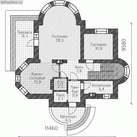 Проект одноэтажного коттеджа "Гардемарин" из газобетона