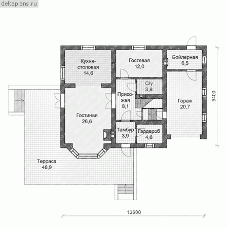 Проект одноэтажного коттеджа "Русвен" из газобетона