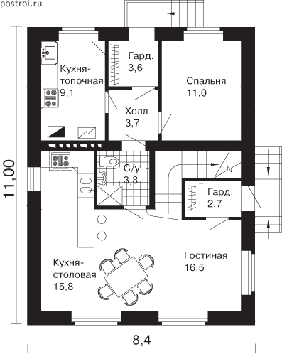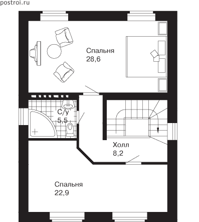Проект одноэтажного дома "Красная Шапочка" из бруса