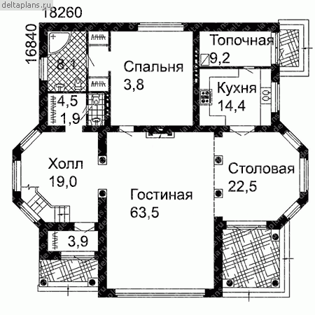Проект одноэтажного дома "Аль Таяр" из бруса с пристройкой