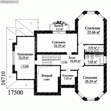 3 спальн. · 4 санузл. · 2 этаж