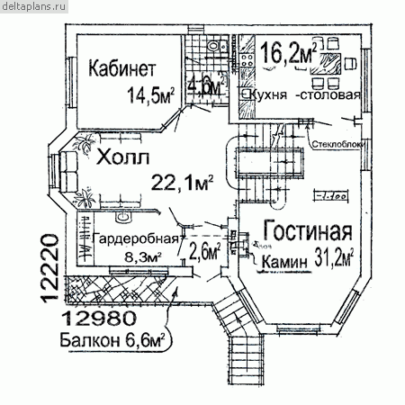 Проект одноэтажной виллы Арх. Goebel (XIX в.) из бруса