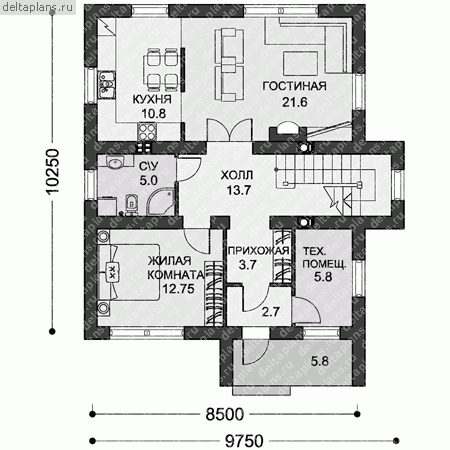 Проект одноэтажного каркасного дома Бунгало L под ключ от компании БАКО