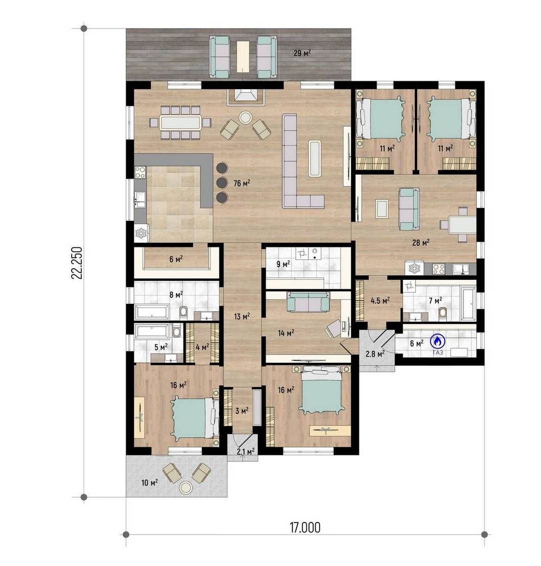 Проект дома из газоблоков 12х15 ГББ-212: цена 9539000 руб.