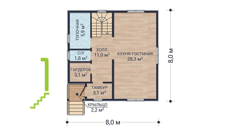 Проект двухэтажного дома "Золотой ключик" из бруса