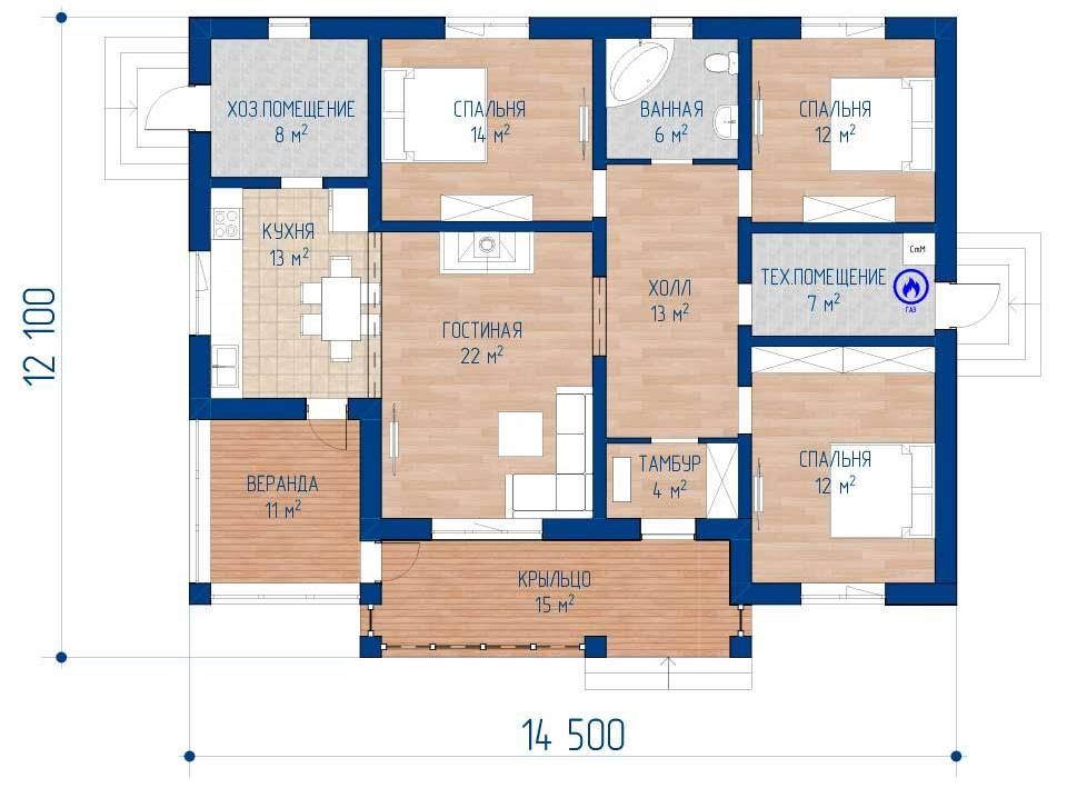 Проект одноэтажного коттеджа "Маргаритка" из газобетона