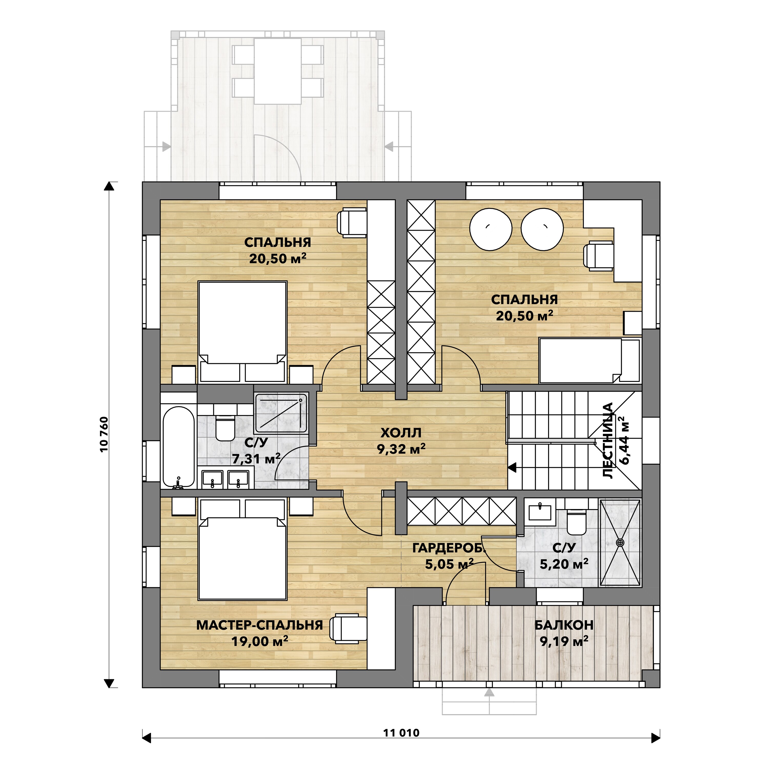 6 спальн. · 2 санузл. · 2 этаж