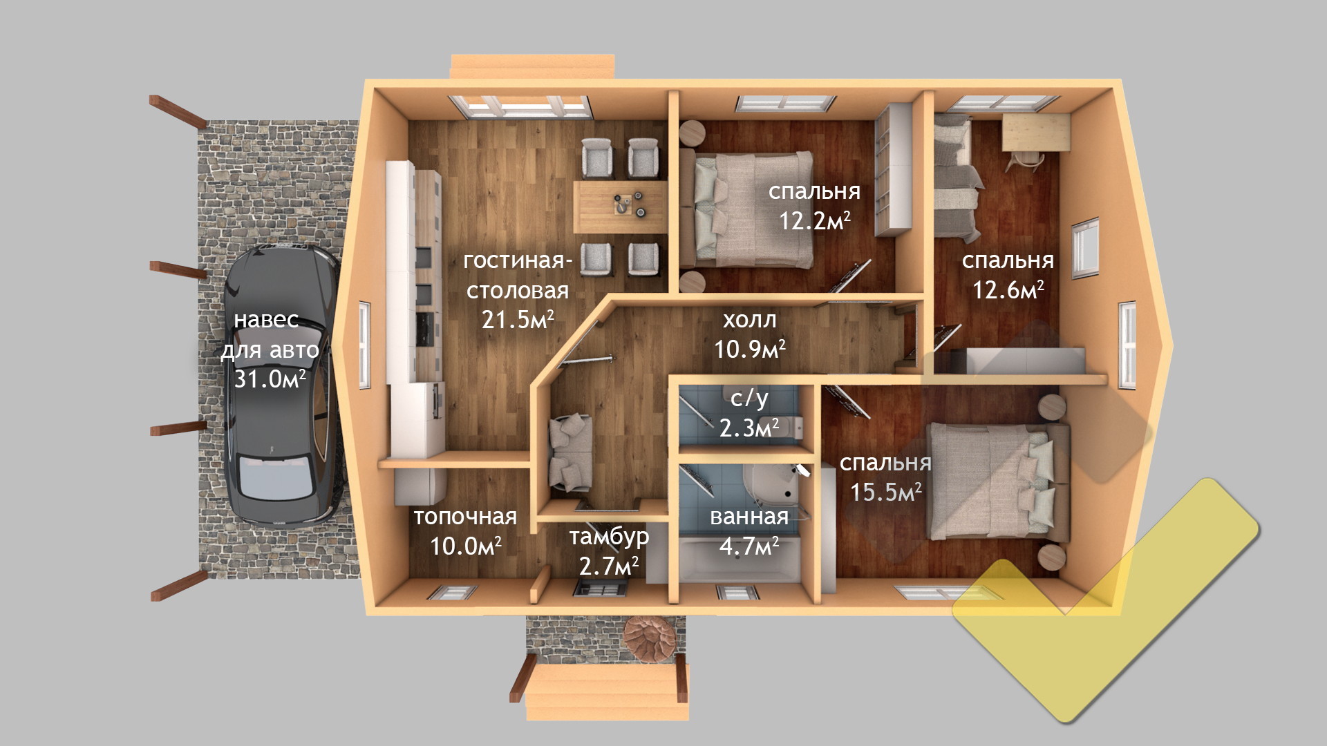 Проект одноэтажного дома "Камелот" из бруса