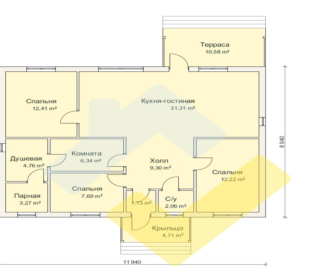 4 спальн. · 2 санузл. · 1 этаж