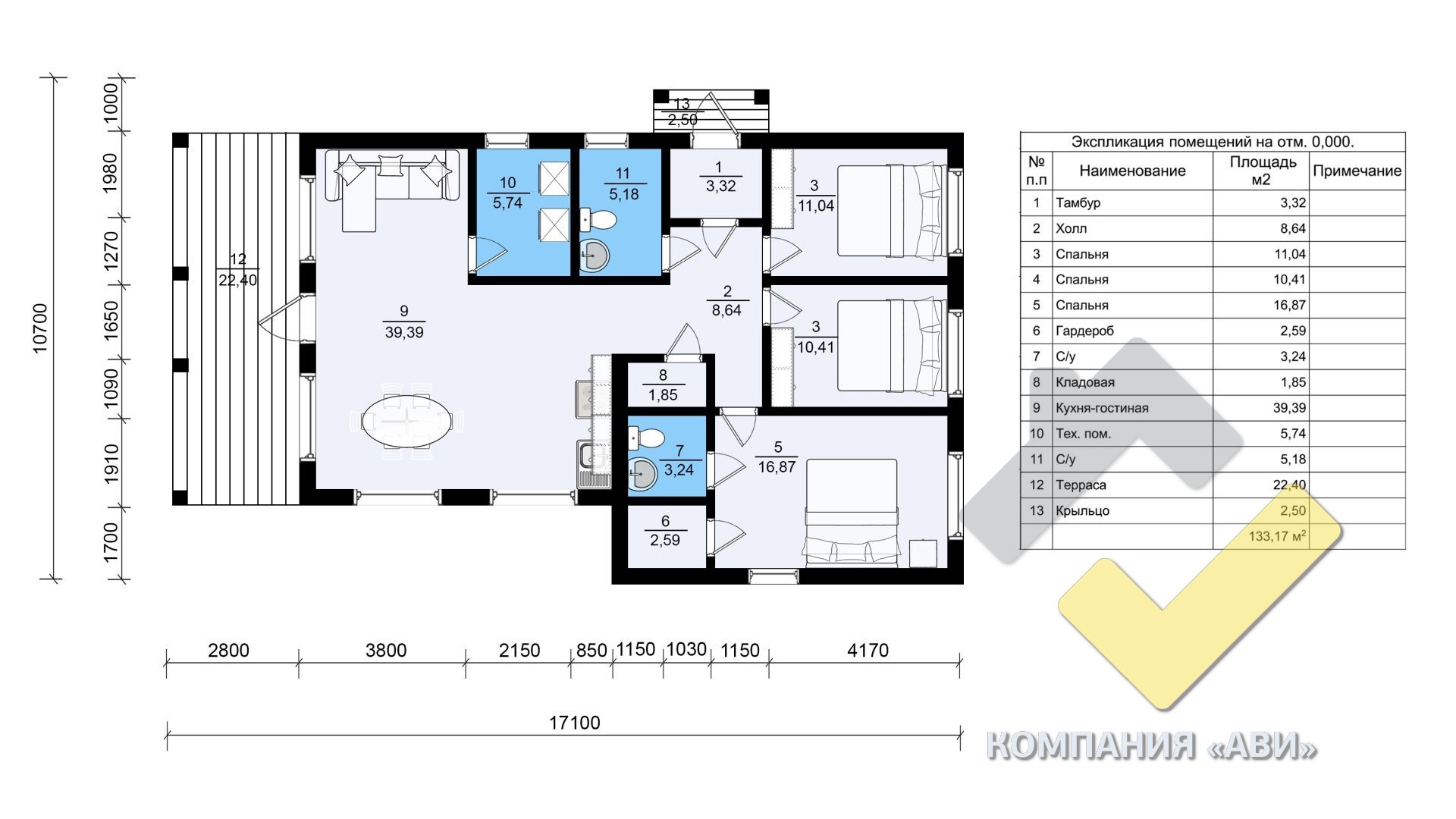 Строительство каркасного дома 14,3х9,7 "Арти" под ключ