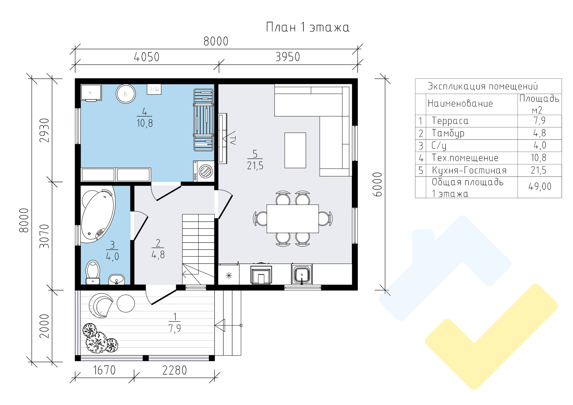 Строительство каркасного дома 8х6 "Теремок-1" под ключ