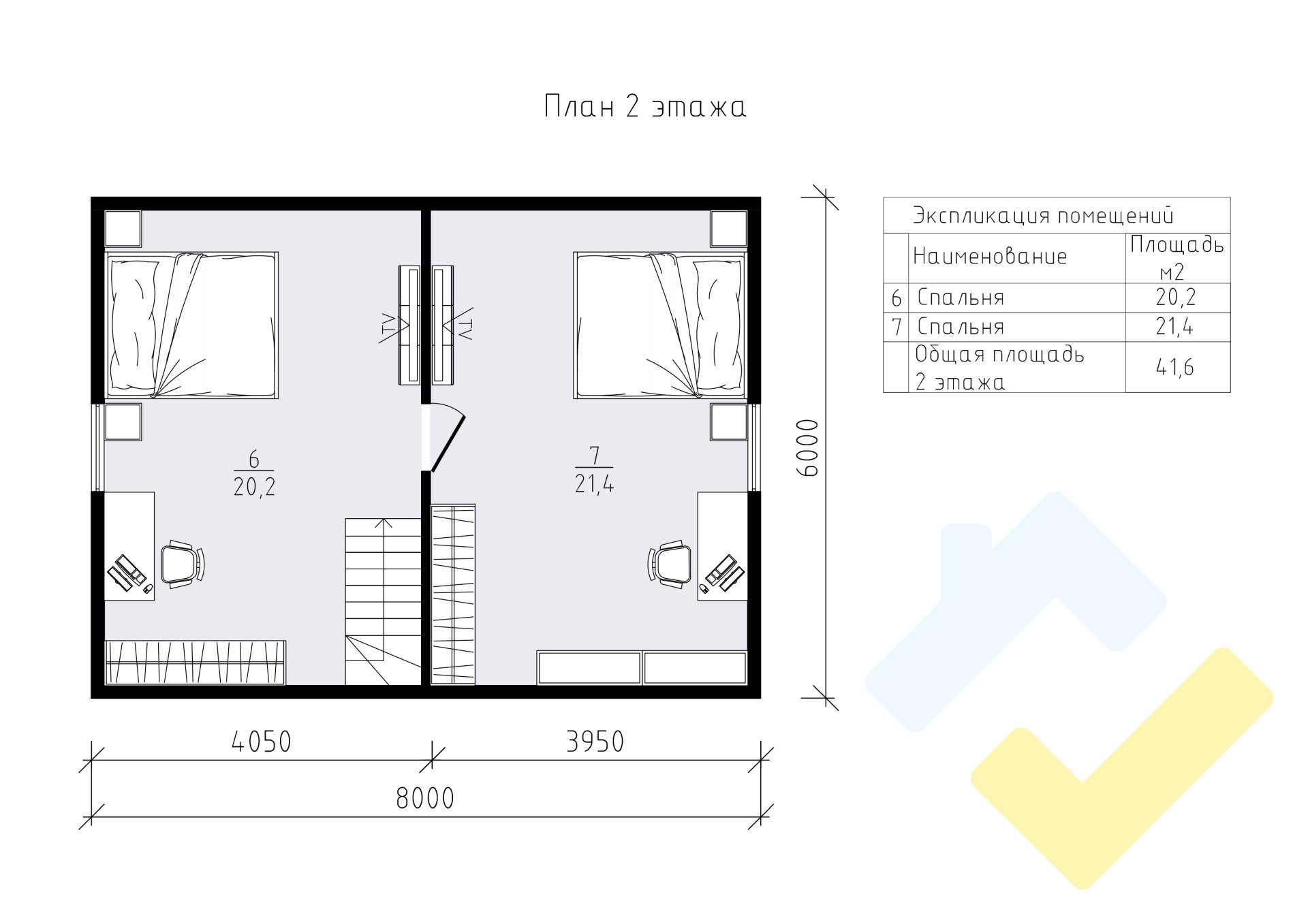 2 спальн. · 1 санузл. · 2 этаж