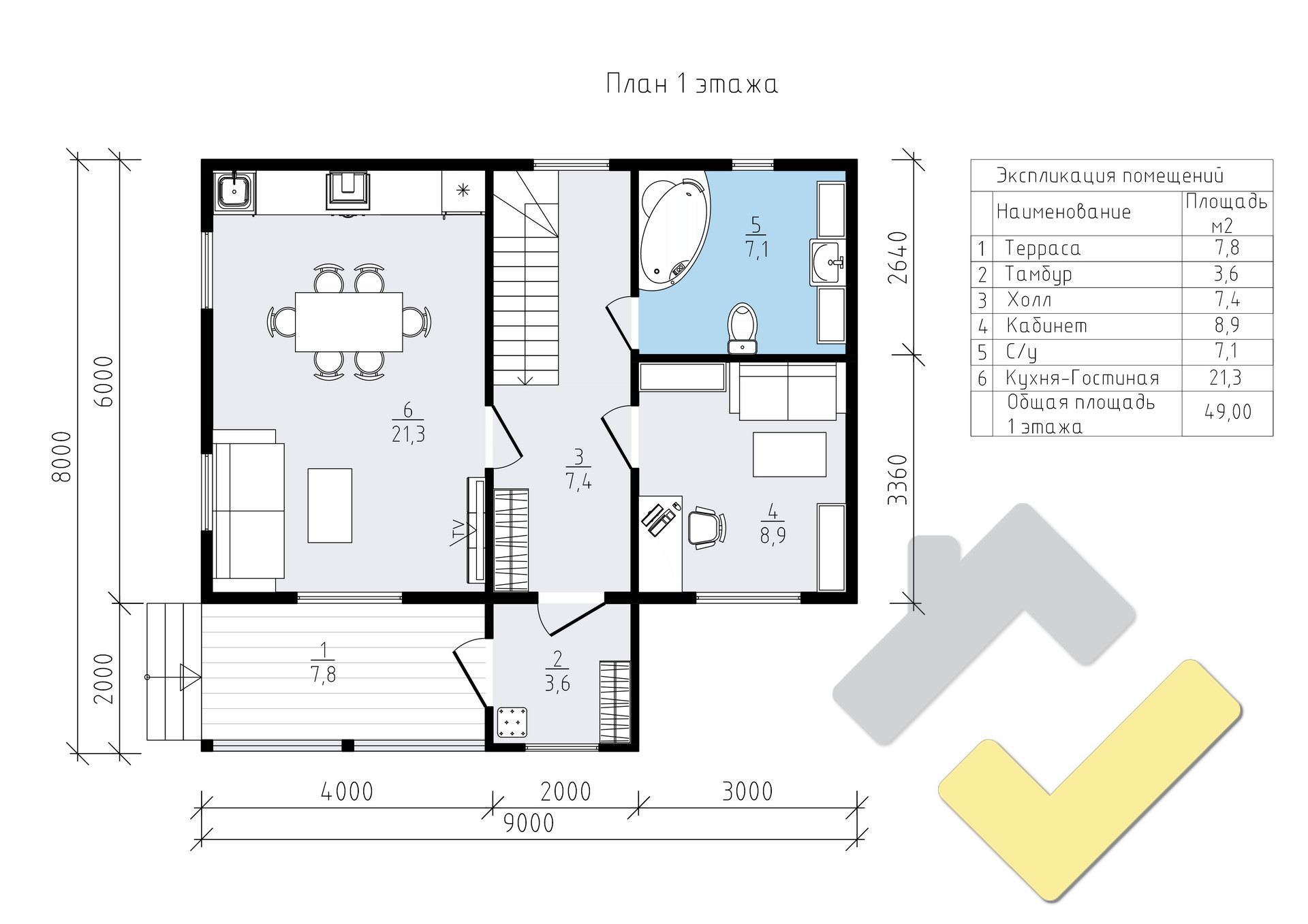 2 спальн. · 1 этаж