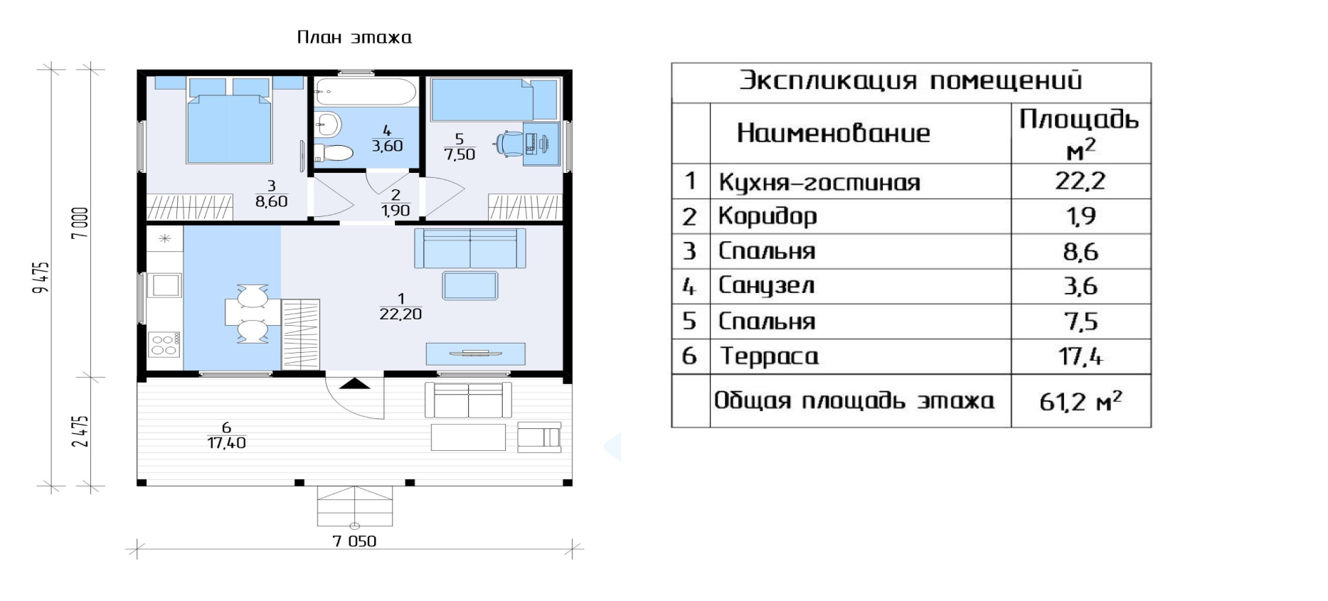Строительство каркасного дома 9х7 "Паули-2" под ключ