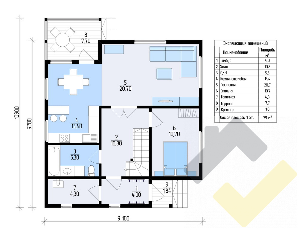 Строительство каркасного дома 9,7х9,1 "Грос" под ключ