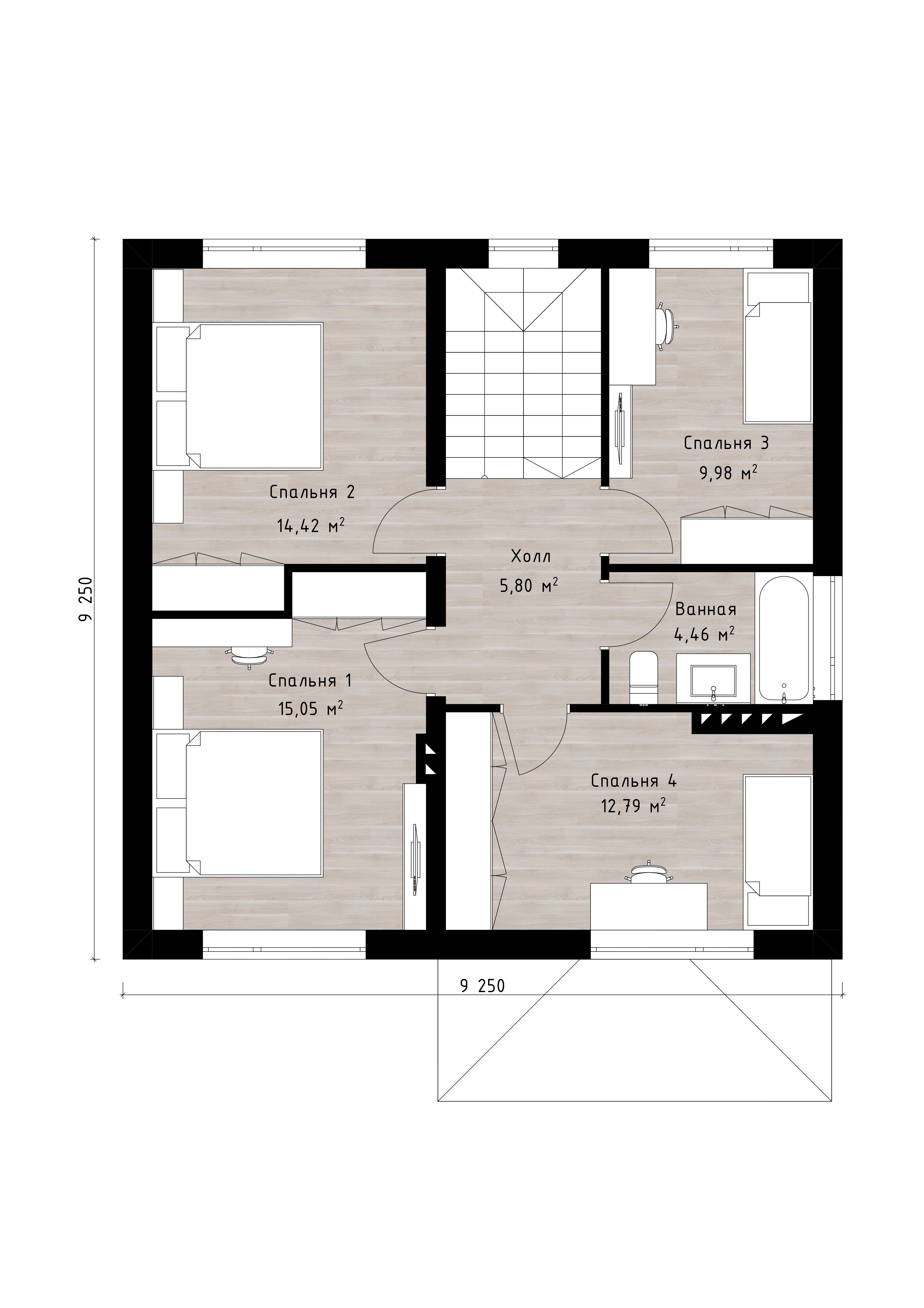 4 спальн. · 1 санузл. · 2 этаж