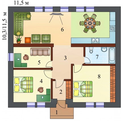 2 спальн. · 1 санузл. · 1 этаж