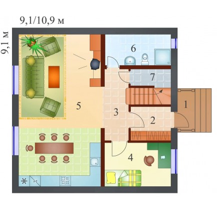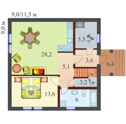 Проект одноэтажного дома "Карамель" из бруса
