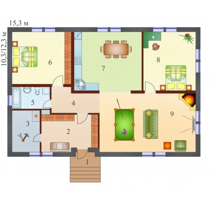 Проект одноэтажного каркасного дома Бунгало L под ключ от компании БАКО