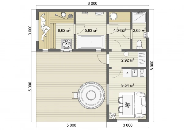 Строительство каркасной бани 6х6 "Владимир" под ключ