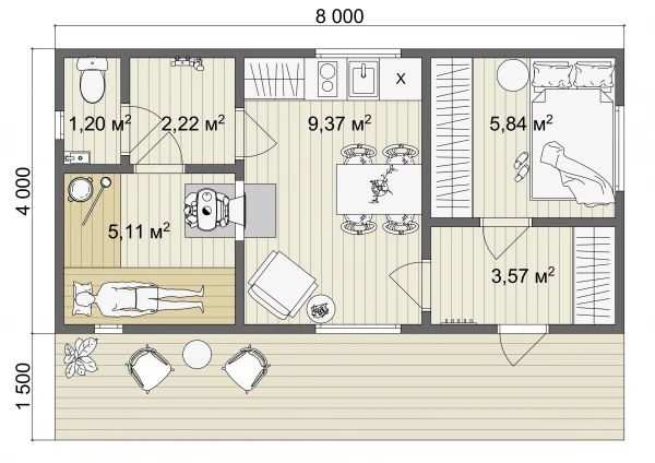 Каркасная баня «КБ-47