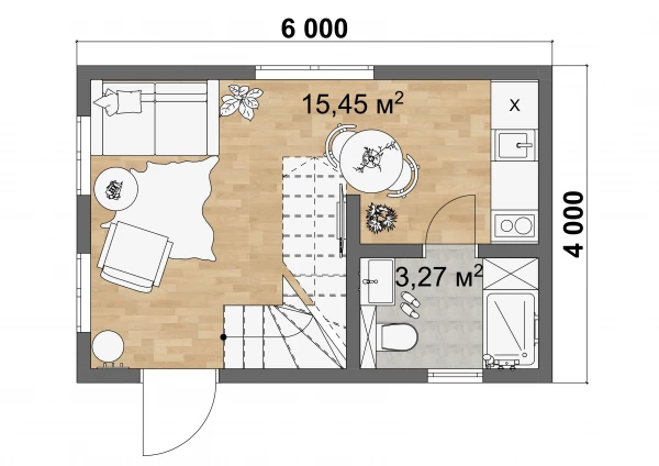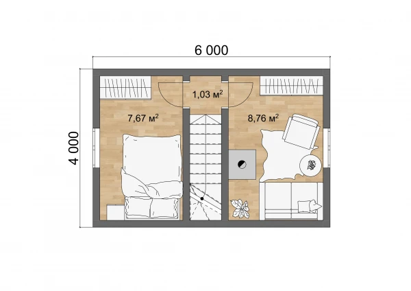 ᐉ Проект одноэтажного дома из газобетона площадью 56м2 с 2 спальнями Nest-M - Купить от застройщика «Домострой»