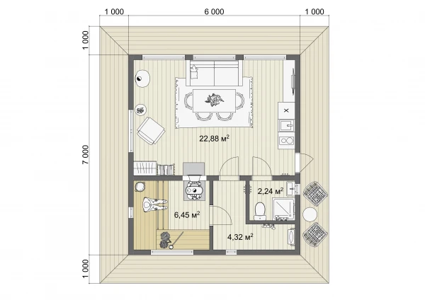 ᐉ Проект одноэтажного дома из газобетона площадью 56м2 с 2 спальнями Nest-M - Купить от застройщика «Домострой»
