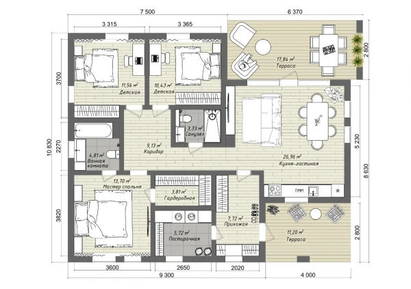 Проект одноэтажного дома "Опалево-М3" из бруса
