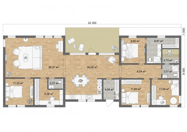 5 спальн. · 1 этаж
